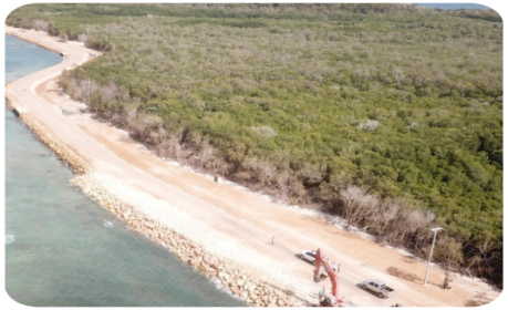Construcción de un pedraplén en la costa del sector Playetas a fin de evitar el daño al ecosistema existente que sobrevendría de la unión entre la ciénaga y el mar, además de solucionar el problema de movilidad de los habitantes de las poblaciones aledañas de esta zona insular del distrito.